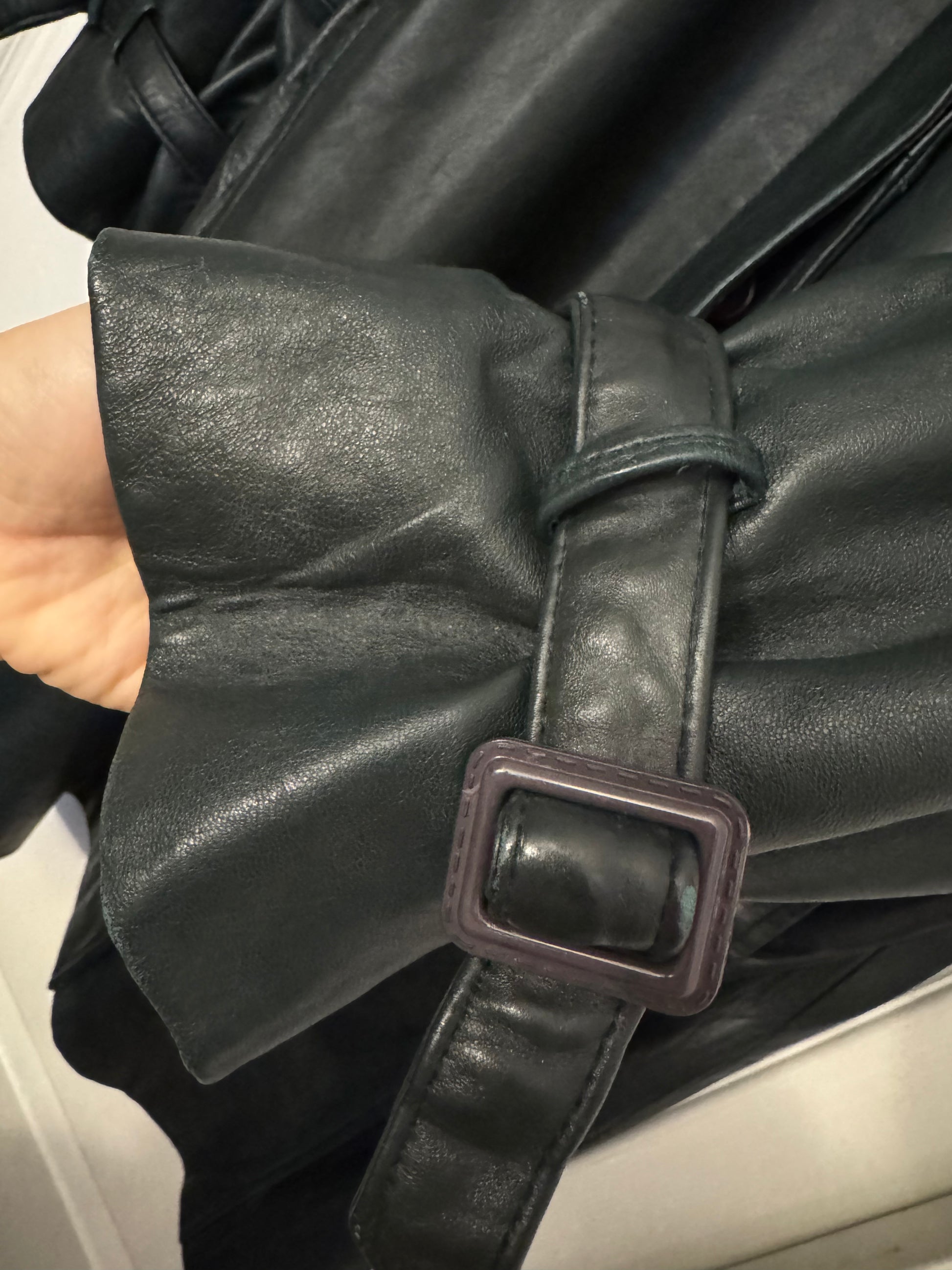 Dark Green Leather Duster Coat – 1990s Revival